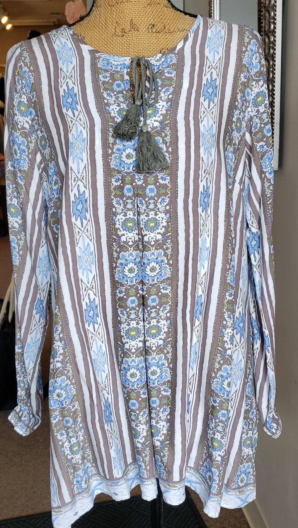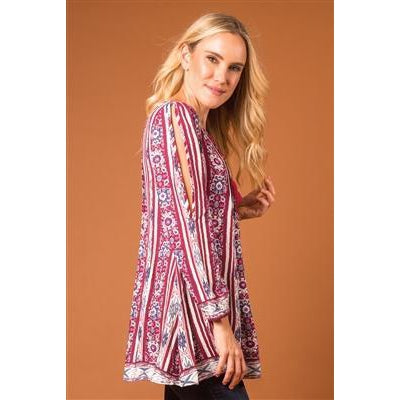 This long top is perfect for any occasion.  The sleeves have an elastic band and their is a small slit opening down the sleeve to give you a great fashion look.