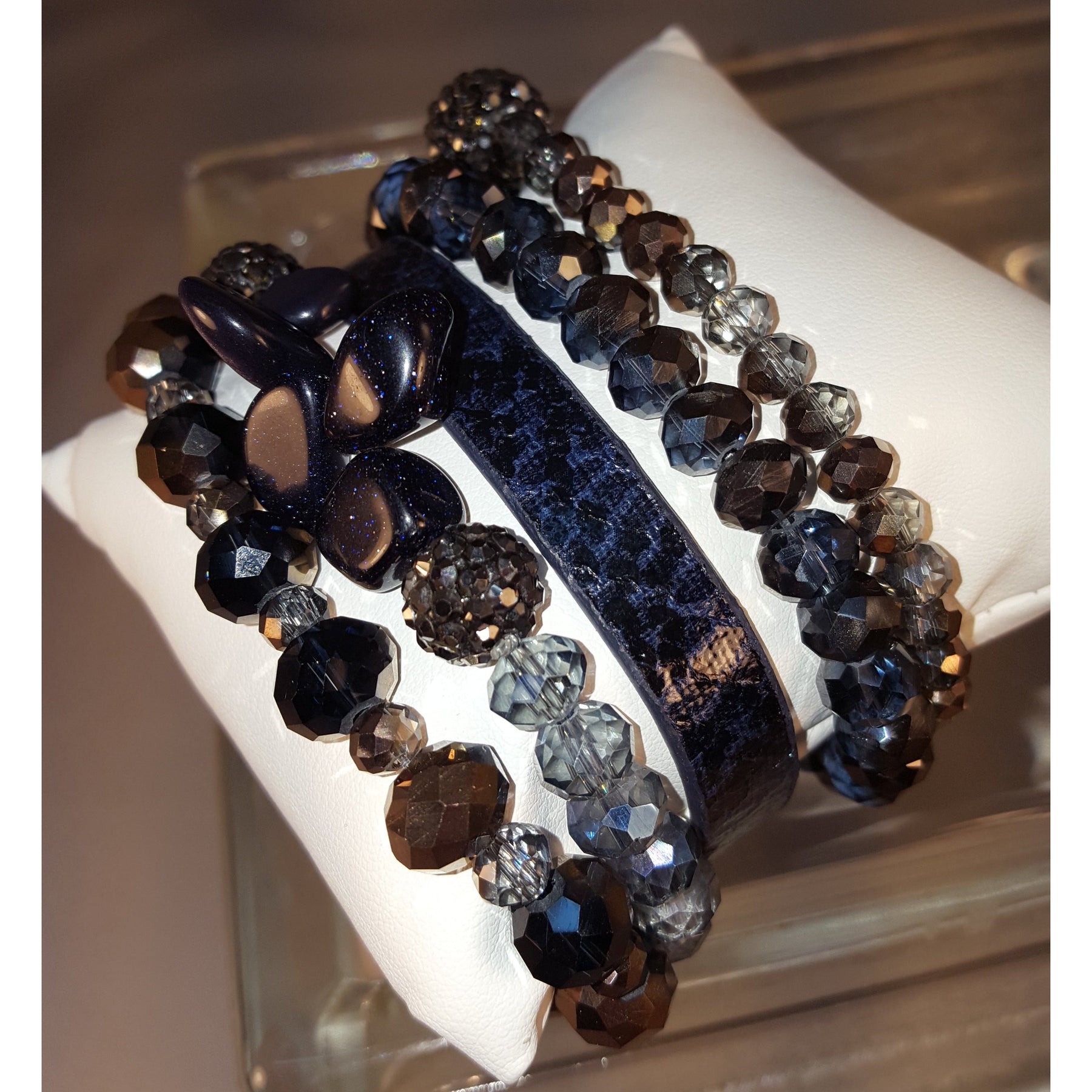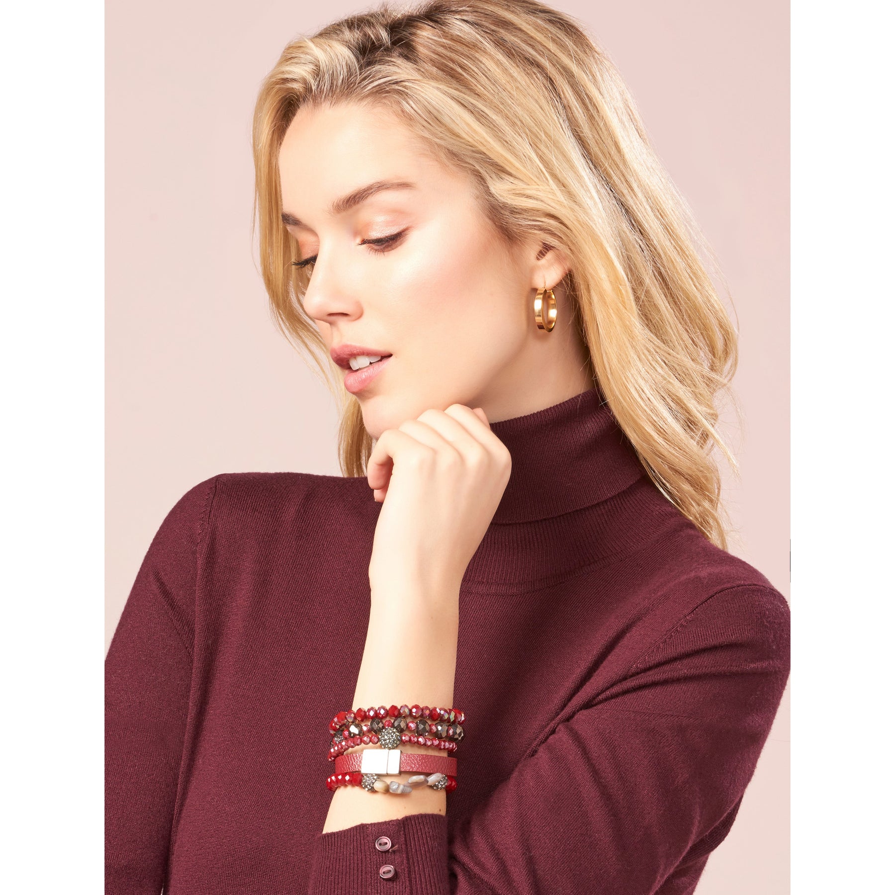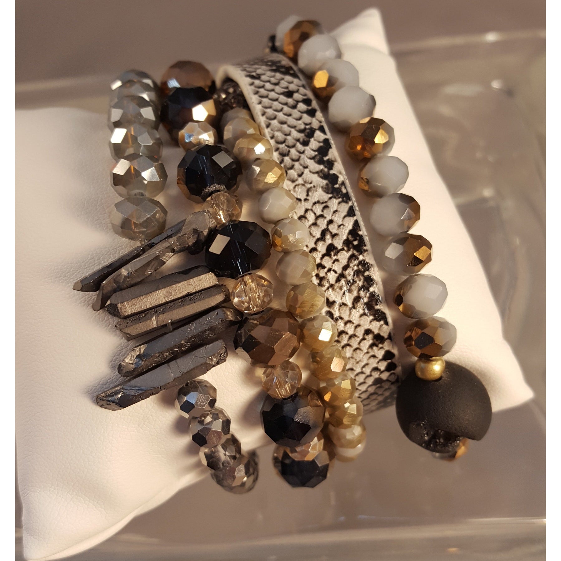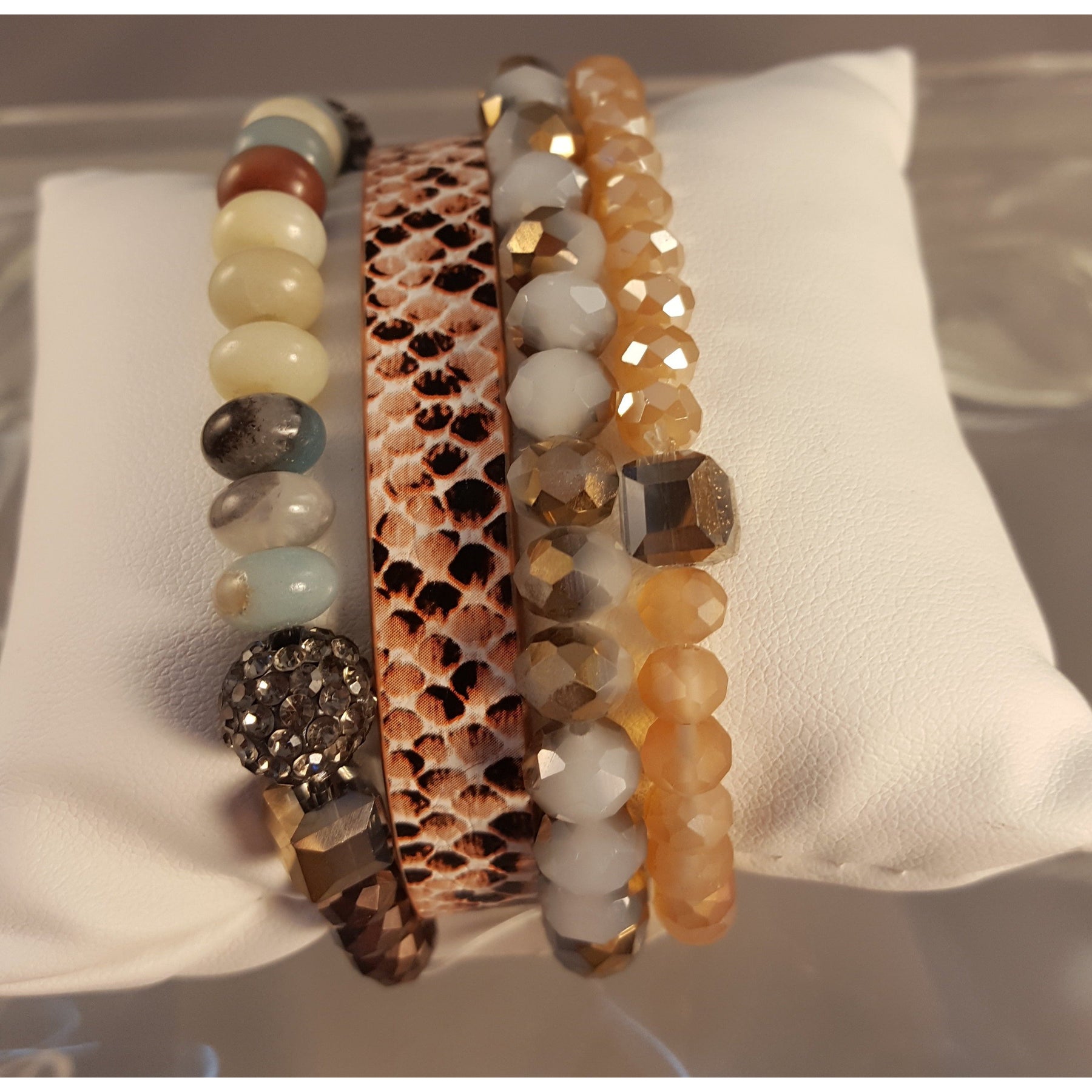 Regular price Save $-24.99Get a stacked look on your wrist with this set of four or five bracelets crafted with gorgeous beads.. Glass Beads, Stone, Leather, Brass.