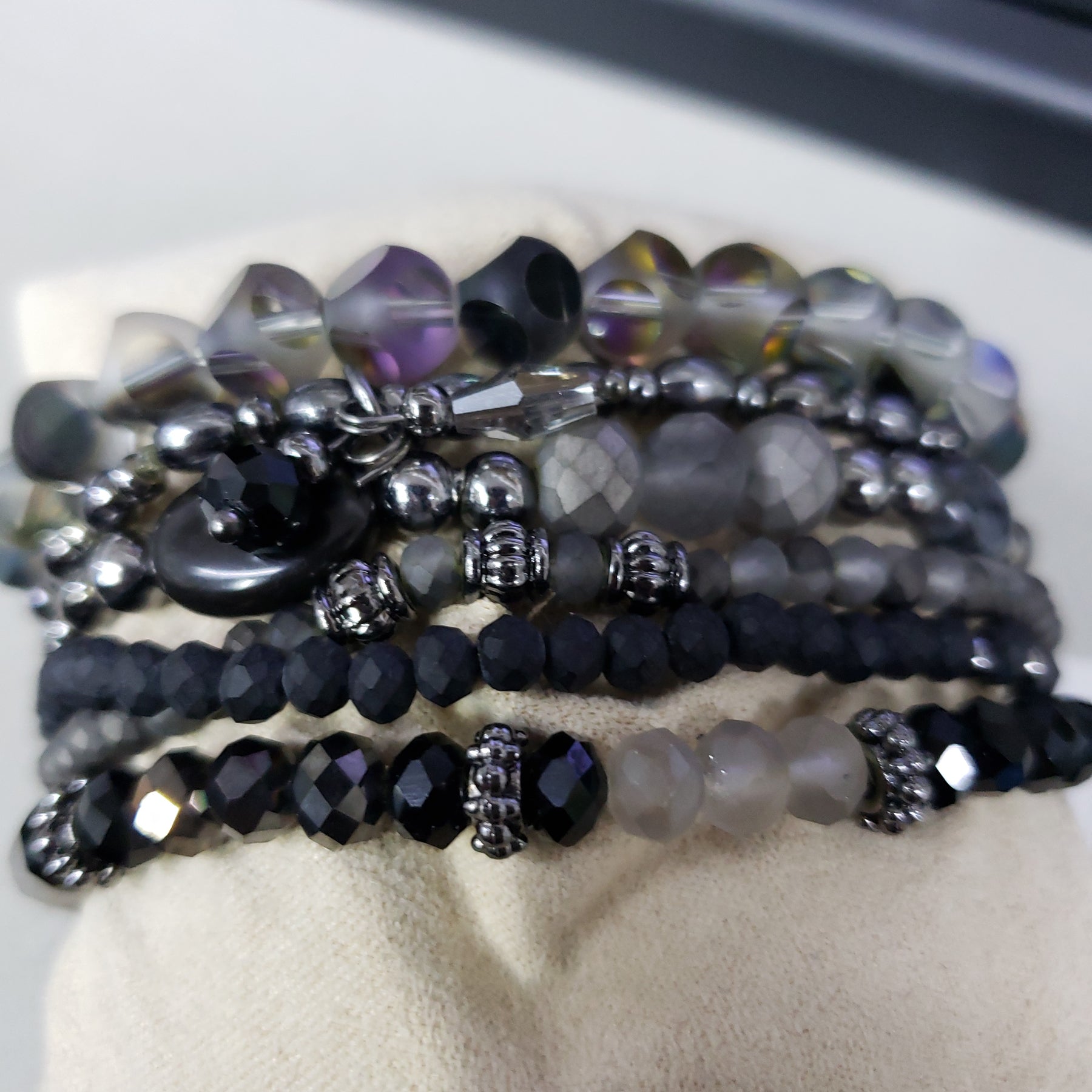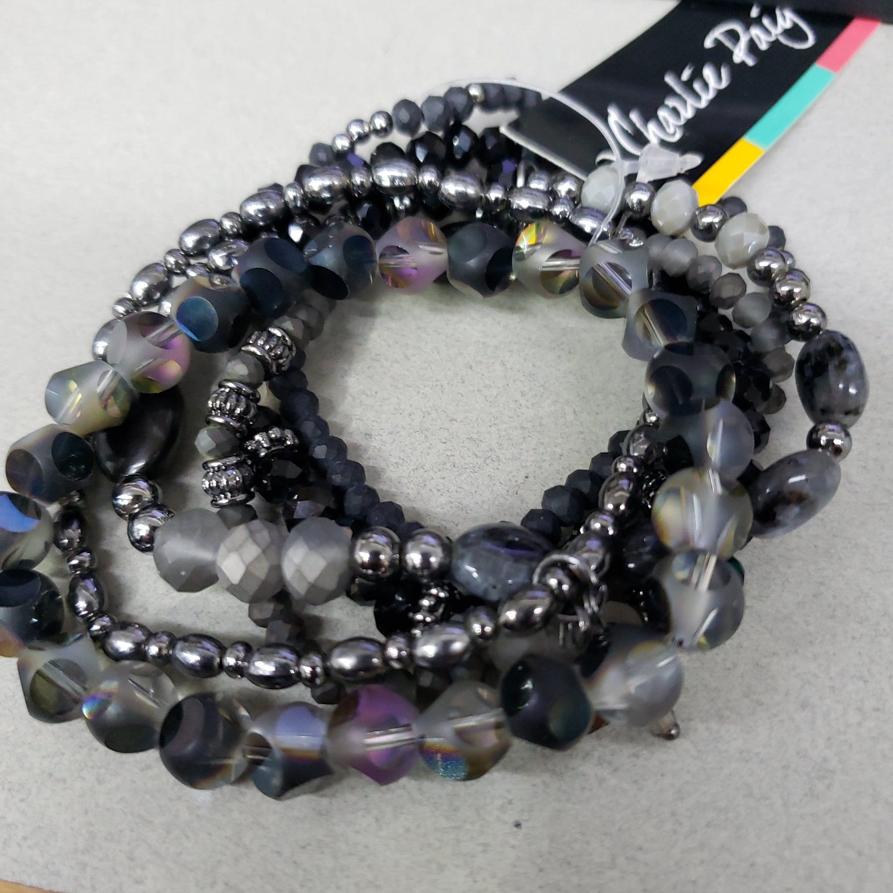 Charlie Paige Beaded Bracelets with Pendant Accents - Black