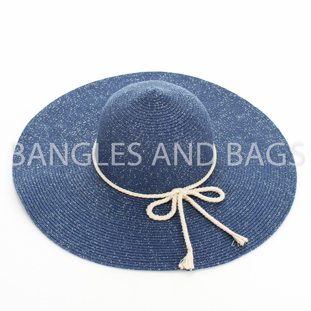 Floppy Glittering Sun Hat with Rope Tie - Navy Blue-ACCESSORIES-BANGLES AND BAGS-Bangles And Bags