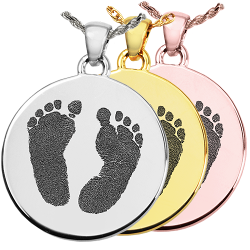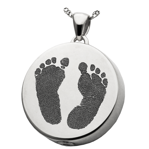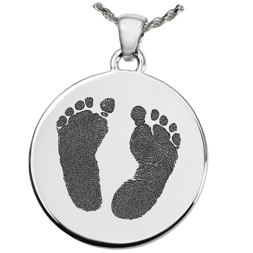 Regular price Save $-144.00Two prints are deeply engraved onto the face of this round pendant. Choose between 2 footprints, 2 handprints or 1 handprint paired with 1 footprint to decorate the front. Also available, a single compartment or a flat style with no interior urn. The back can be decorated with text lettering, photo, fingerprint, handprint, footprint or custom handwriting.