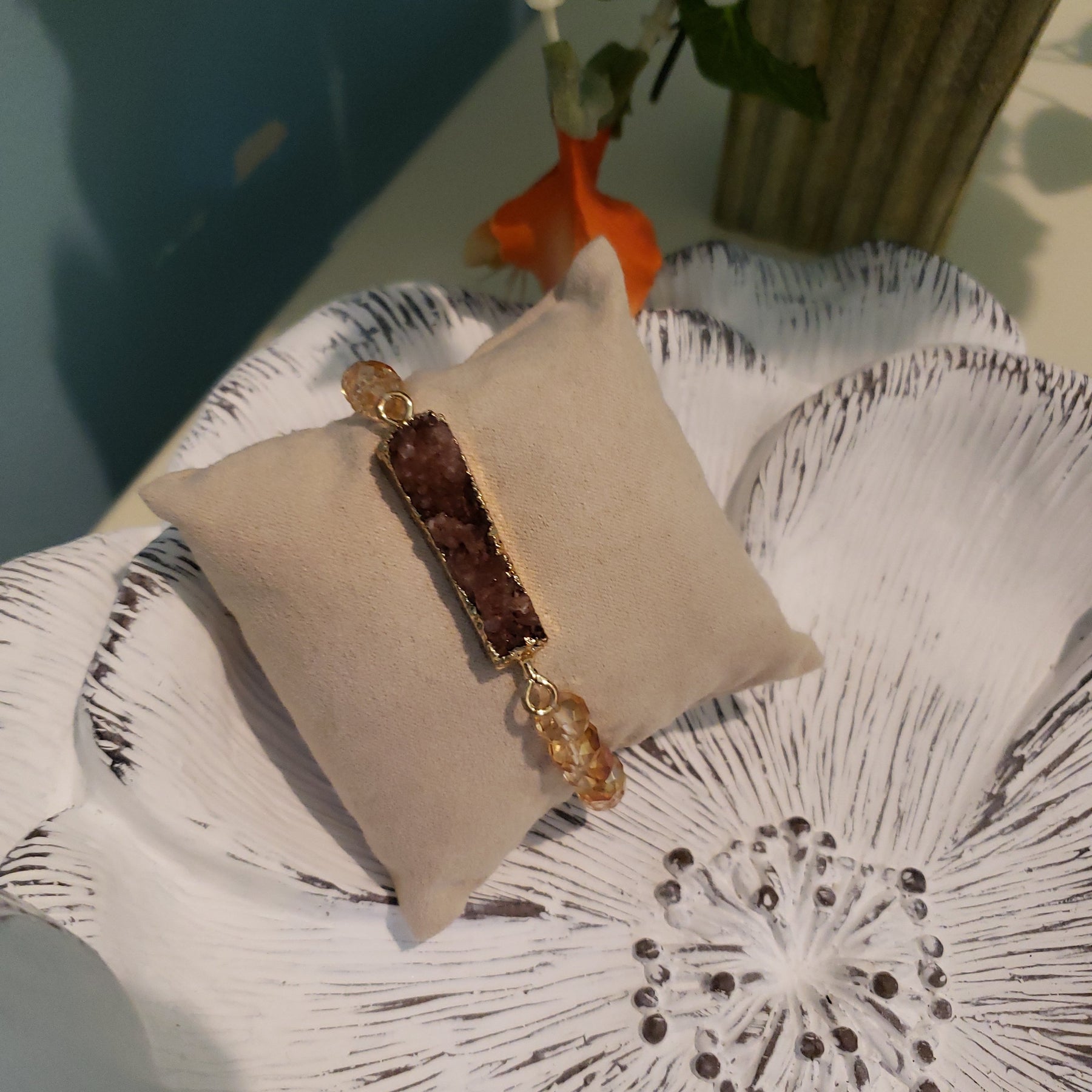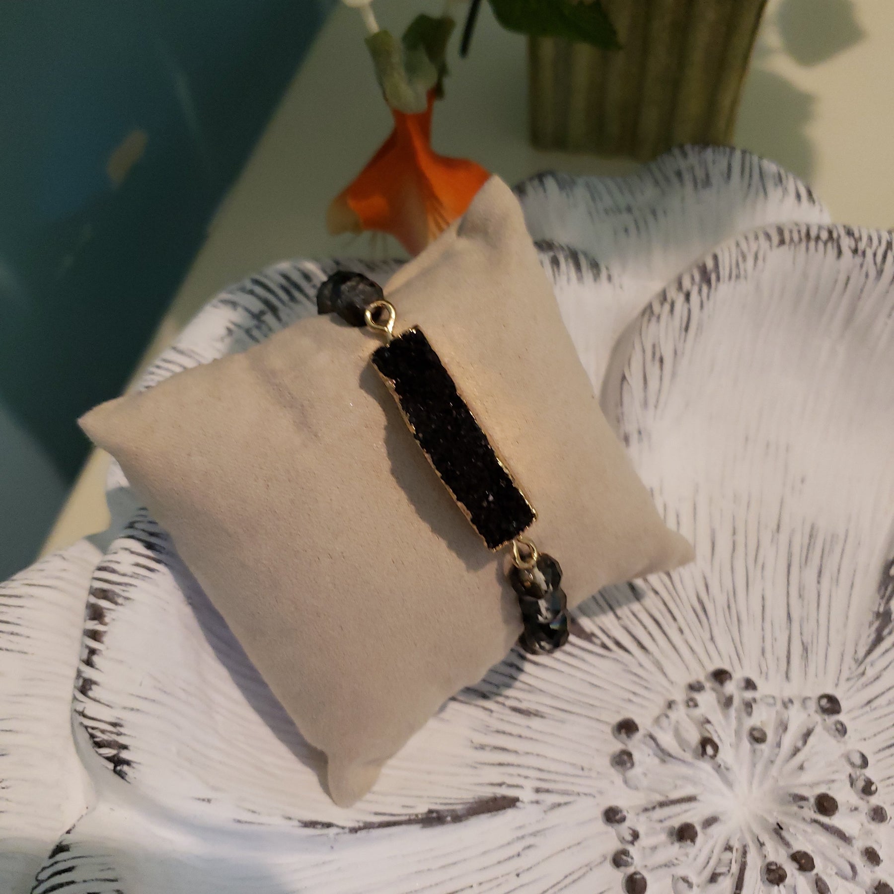 Beaded Stretch Bracelet with Stone Accent