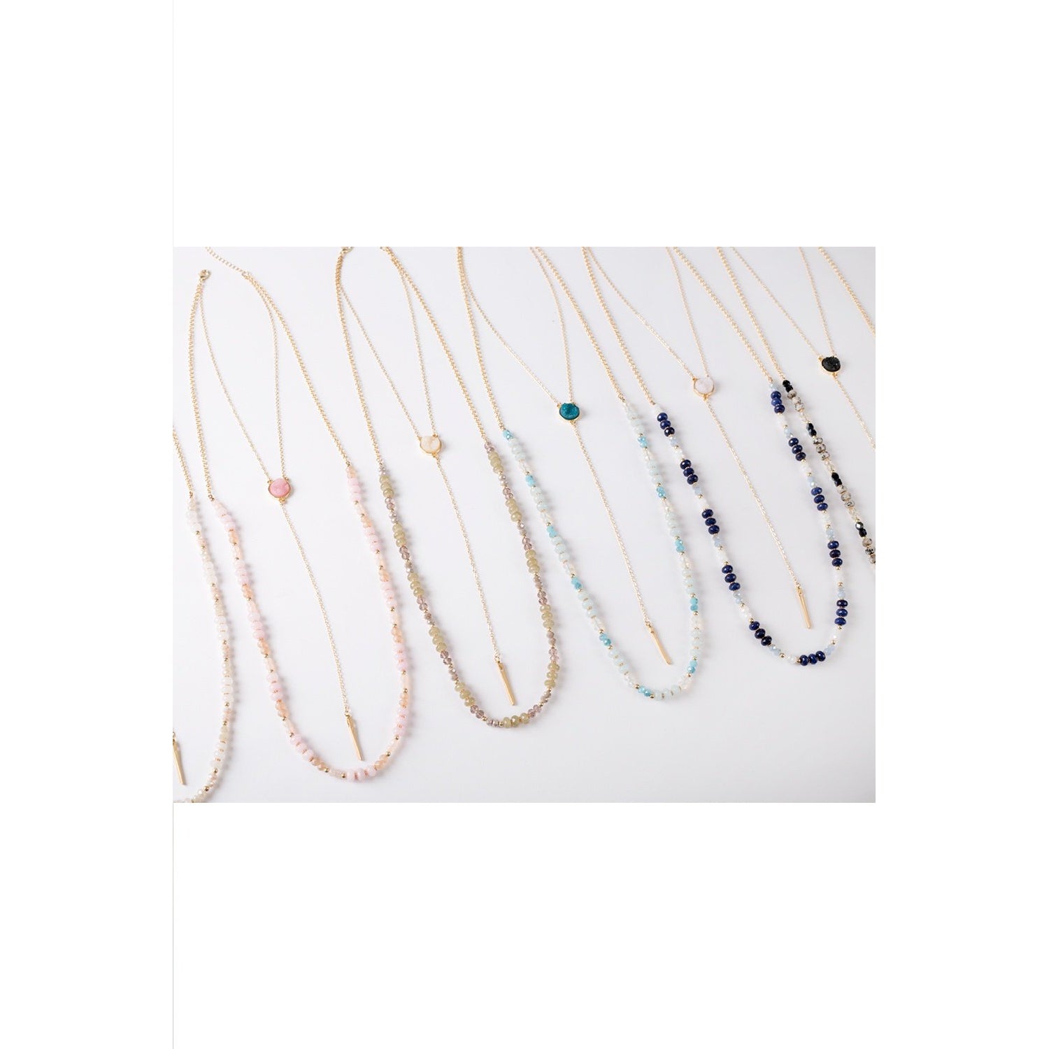 Regular price Save $-32.99This beautiful necklace has a base metal with semi precious stones and faceted glass fire beads that adjusts from 38" to 41".